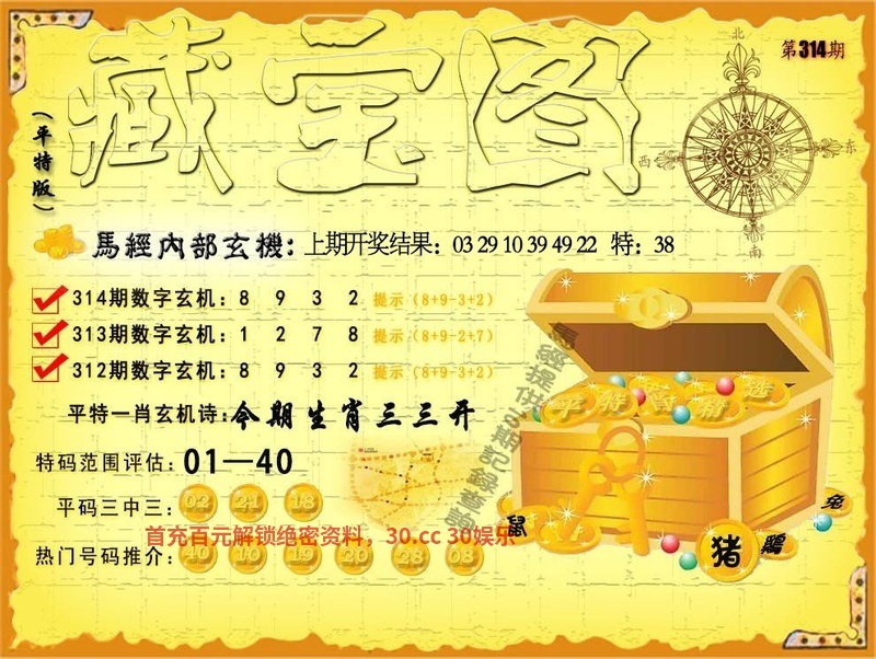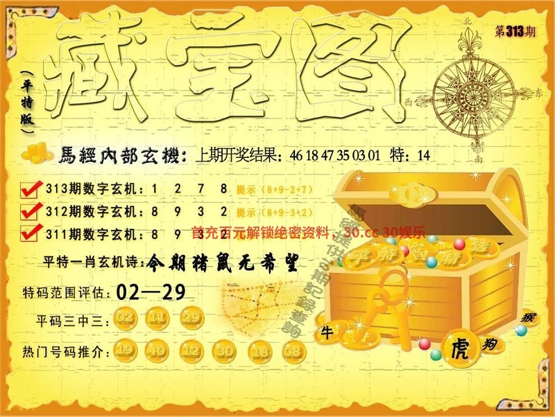 314期:今期羊鸡牛出特,东土苗人尚有残开:羊23准 |